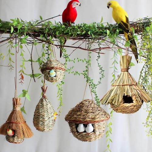 Vogelnest Gras, 2 Stück Gras Bird Nest, Vogelhäus, Handgewebte Vogelhäuser, Vogelhäus zum Aufhängen für Wellensittich Meise, Kanarienvogel, Amsel, Hummingbird, Rotkehlchen (Farbe der Stämme, D)