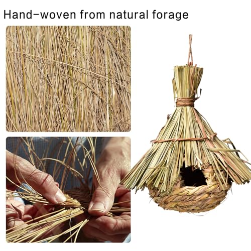 🐦KOMFORTABEL UND SICHER🐦: Handgewebte Vogelnester sind aus Schilfgras handgewebt, fest und nicht leicht zu lösen, stabiler. Sie können so viele handgewebte Vogelnester wie Sie möchten um Ihre Veranda oder Garten hängen, um einen gemütlichen und warmen Lebensraum für Ihre Vogelfreunde zu bieten.