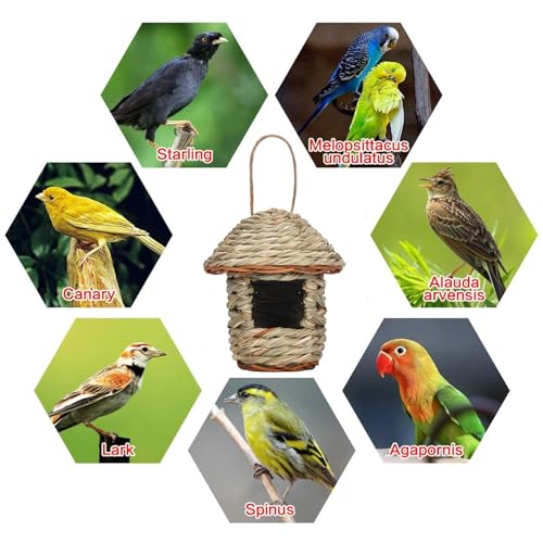 Details: Vogelnest Gras, 2 Stück Gras Bird Nest, Vogelhäus, Handgewebte Vogelhäuser, Vogelhäus zum Aufhängen für Wellensittich Meise, Kanarienvogel, Amsel, Hummingbird, Rotkehlchen (Farbe der Stämme, E)