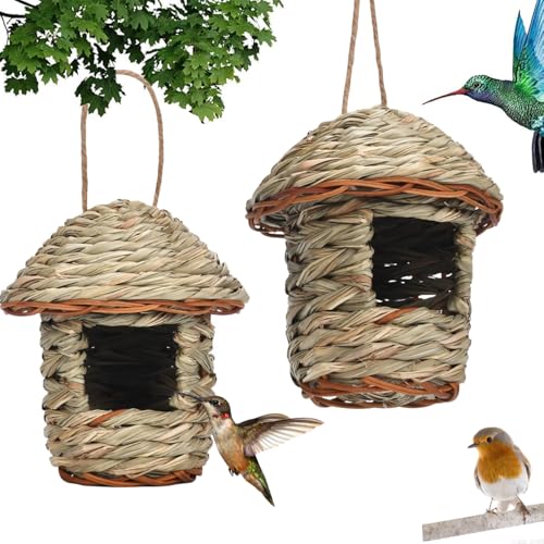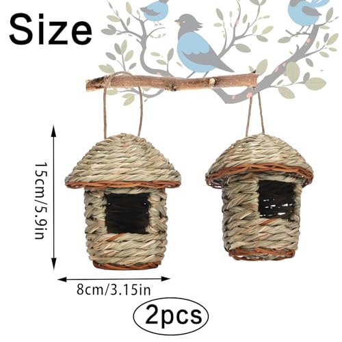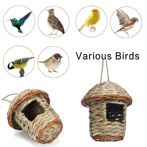 Vogelnest Gras, 2 Stück Gras Bird Nest, Vogelhäus, Handgewebte Vogelhäuser, Vogelhäus zum Aufhängen für Wellensittich Meise, Kanarienvogel, Amsel, Hummingbird, Rotkehlchen (Farbe der Stämme, E)