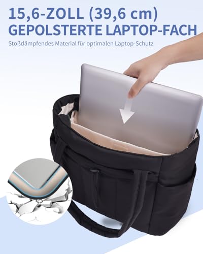 Wandering Nature Handtasche Damen Tote Bag 20L Groß Gesteppt Shopper Tasche mit Laptopfach (15,6 Zoll) & Getränkehalter (40oz/1.18L), Ideal für Büro Schule Reisen Shopping (Patent Angemeldet)
