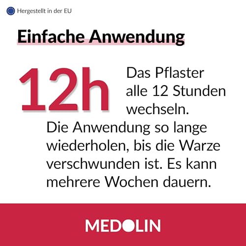 RICHTIG ANWENDEN: Wechseln Sie das Warzenpflaster alle 12 Stunden. Wiederholen Sie die Anwendung so lange, bis sich die Warze abgelöst hat. Geben Sie dem Ganzen etwas Zeit.