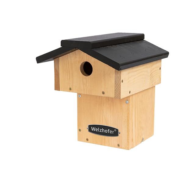 Welzhofer Nistkasten Nancy, Vogelhaus mit 34mm Einflugloch, handgemacht in Europa, für Kohlmeisen, Kleiber, Trauerschnäpper, Haus- & Feldsperlinge & Gartenrotschwänze, katzensicheres Vogelhaus
