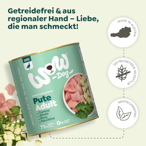 WOW Dog Hunde-Nassfutter mit Pute | Enthält Vitamine und Mineralien, ohne Getreide und Zucker | 800 g / 12er Pack
