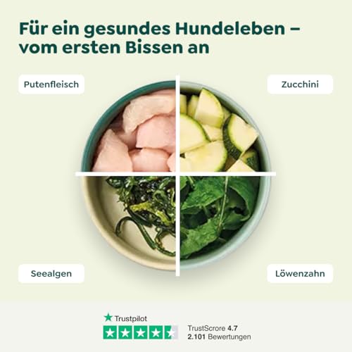 FÜR SENSIBLE HUNDEMÄGEN BESTENS GEEIGNET – Mageres Putenfleisch kombiniert mit Zucchini, Kräutern und Leinöl sorgt für leichte Verdaulichkeit und natürliche Magenbalance