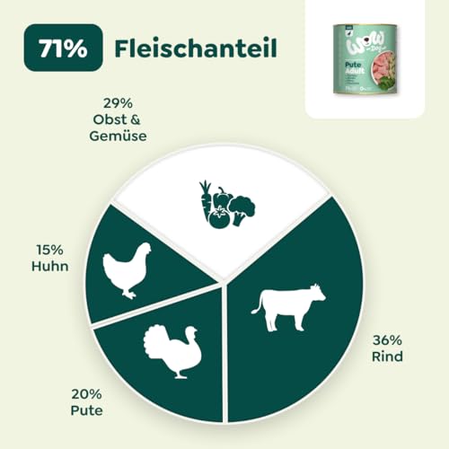 Details: WOW Dog Hunde-Nassfutter mit Pute | Enthält Vitamine und Mineralien, ohne Getreide und Zucker | 800 g / 12er Pack
