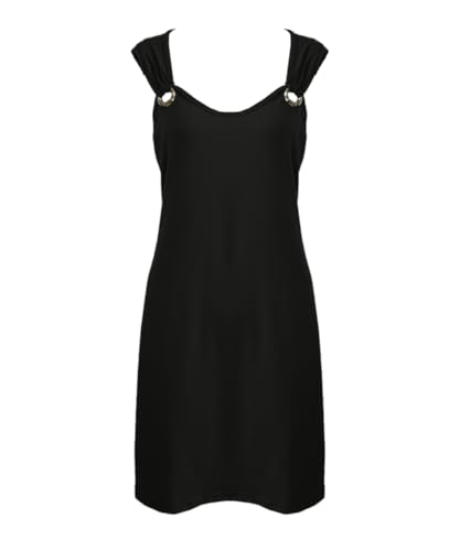 • DESIGN: Etuikleid damen elegant hat ein einfaches Design, V-Ausschnitt, ärmellos, Metallschnalle Verschönerung, knielang, gerader Schnitt, lockere Passform, blusenkleid wird sicherlich ein vielseitiges Element in Ihrem Kleiderschrank zu werden.