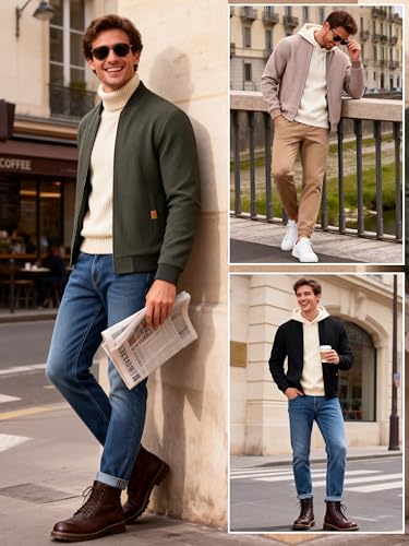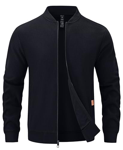 YuKaiChen Übergangsjacke Herren Jacke Leichte Bomberjacke aus Waffelstoff mit Reißverschlusstasche für Frühling Herbst