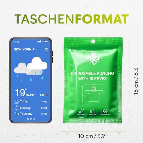 Details: ZENO Regenponcho Festival Wasserdicht – Regencape Festival Einweg – Regenponcho Damen & Mann